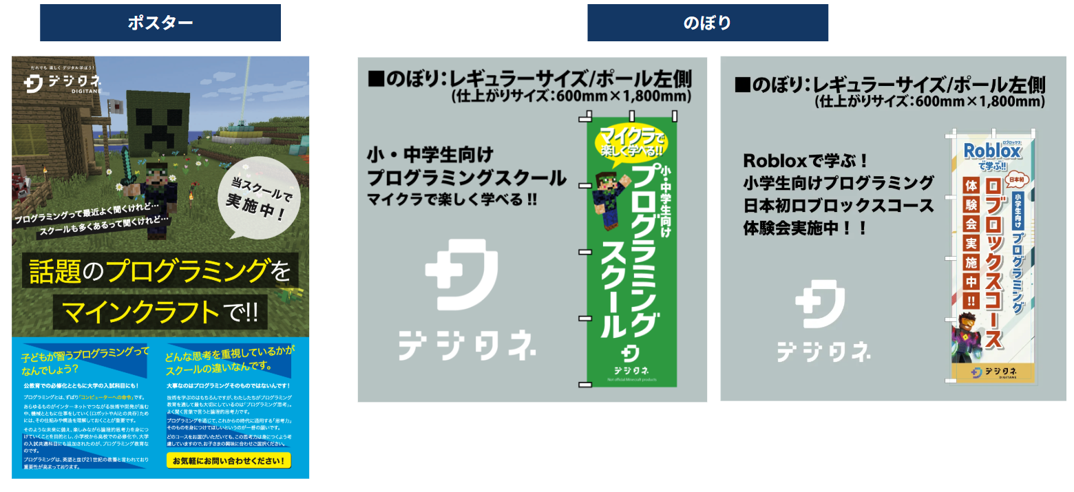 また、のぼり・ポスターもあり、教室の前を通るときに目につきやすくなります。