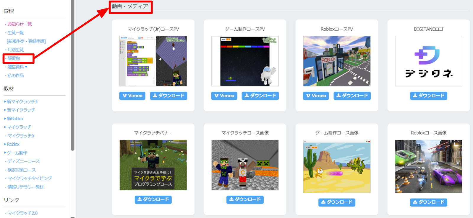 管理画面の販促物ページに、コースごとの画像データがあります。
