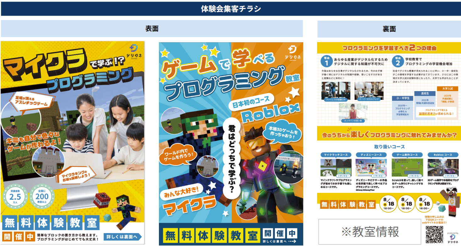・表面「(・・・)集客チラシ」※マイクラ×Robloxのコース導入の場合「W訴求チラシ」