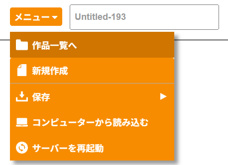 方法②マイクラッチ2.0のプログラミング画面>メニュー>作品一覧へ