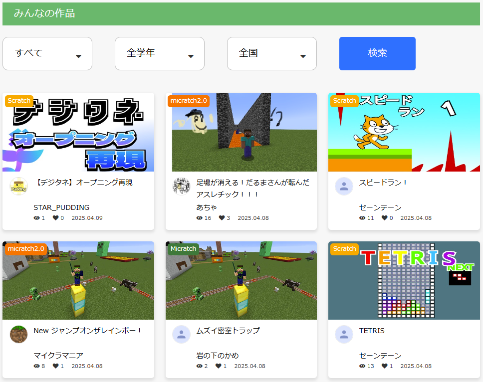 また、他の生徒の作品を見て遊ぶこともできるので、アイデア作りにも使えます。
