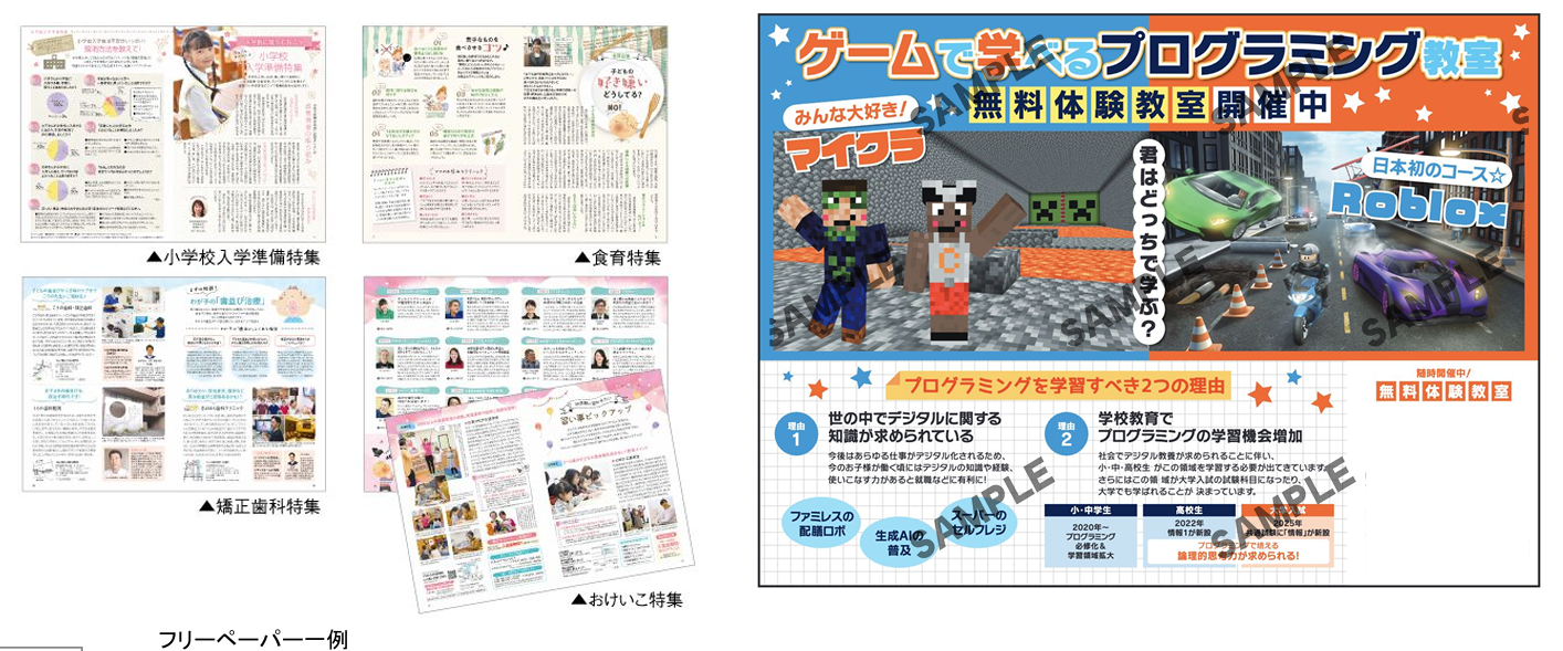 集客チラシ以外にも、無料の情報誌に教室情報や提供コースを掲載する方法もあります。 掲載料はかかりますが、地域に密接した媒体も多く読み手は無料で受け取ることができるため 特定のターゲットに手に取ってもらいやすいのが特徴です。
